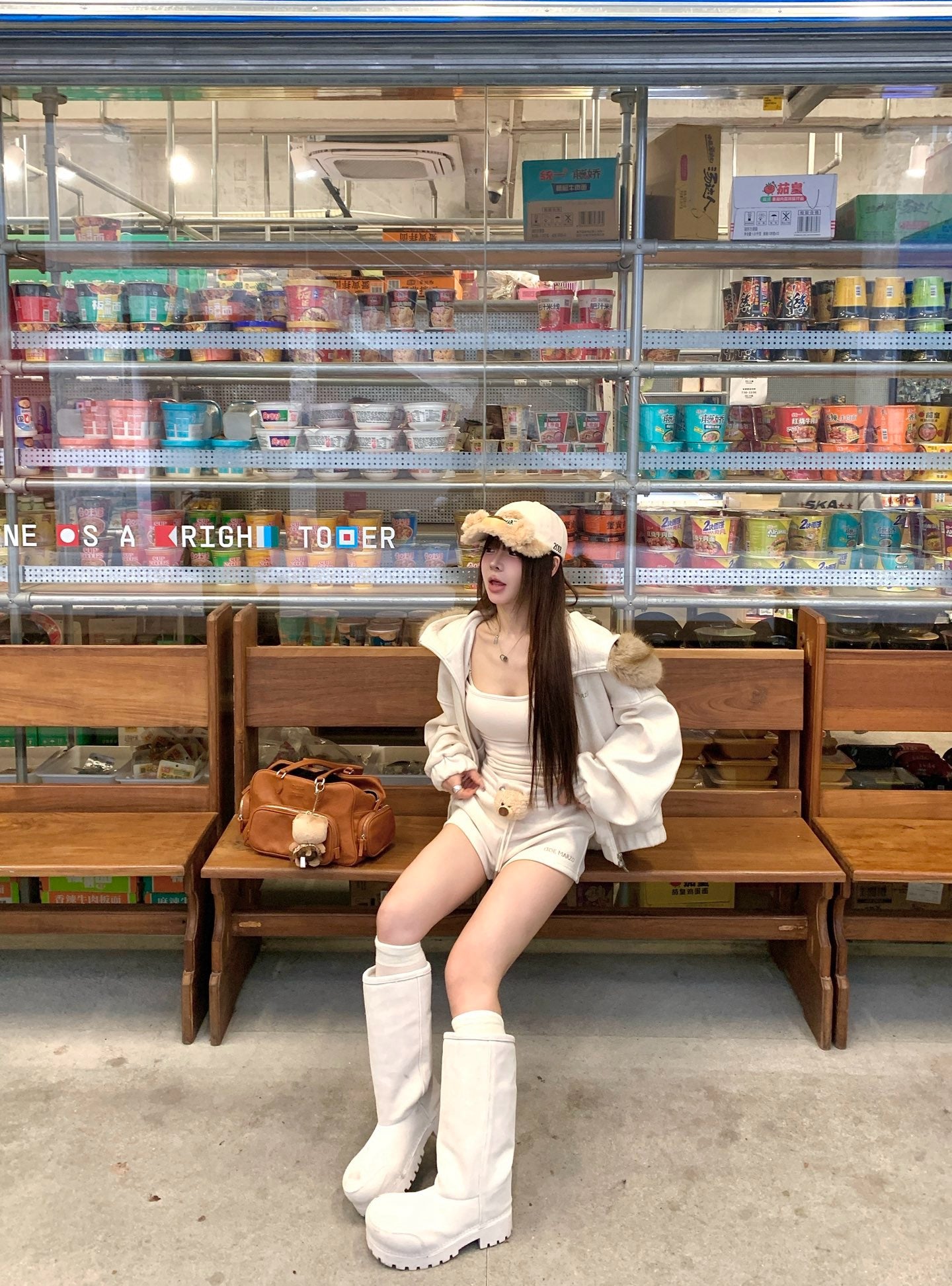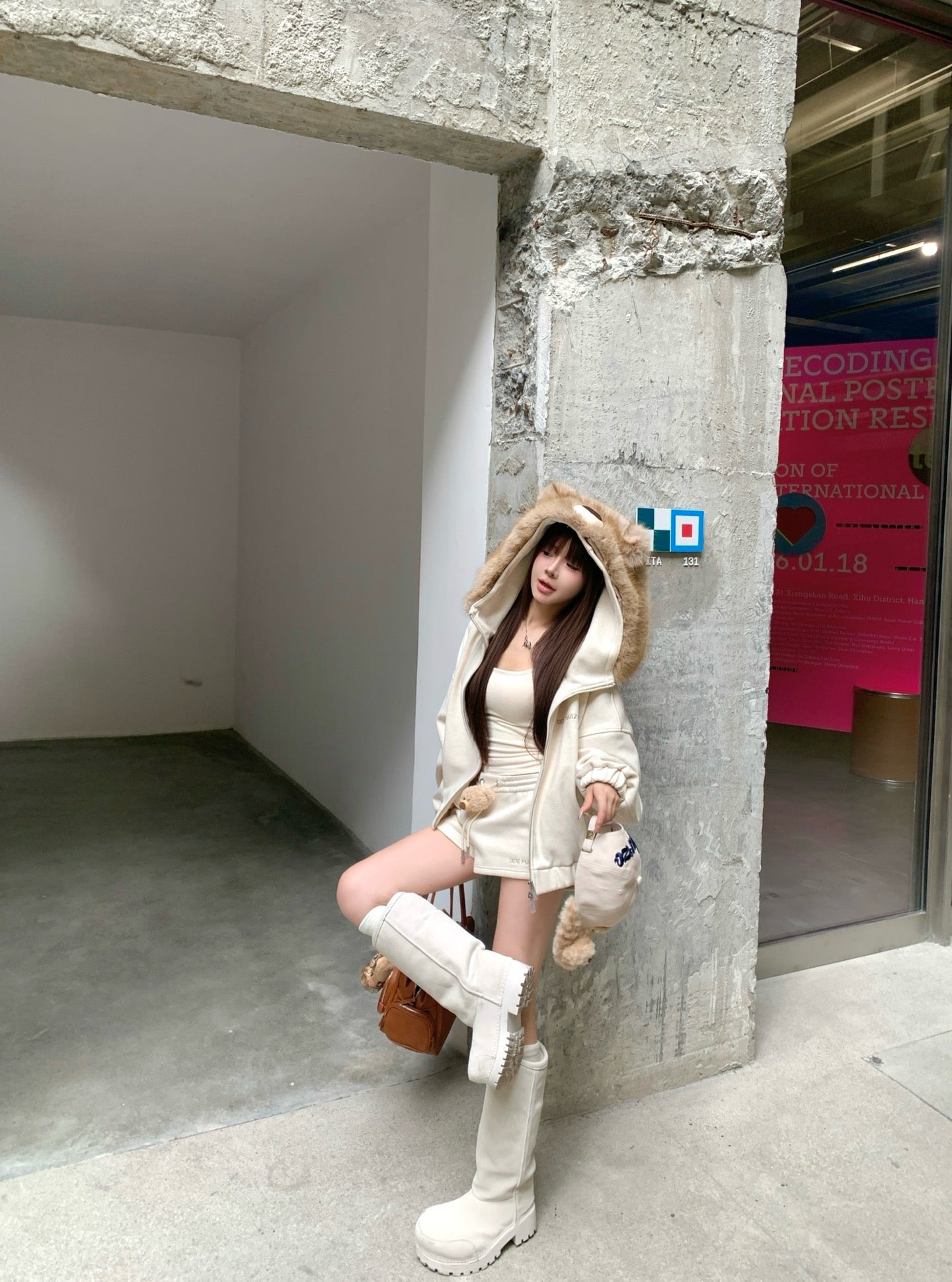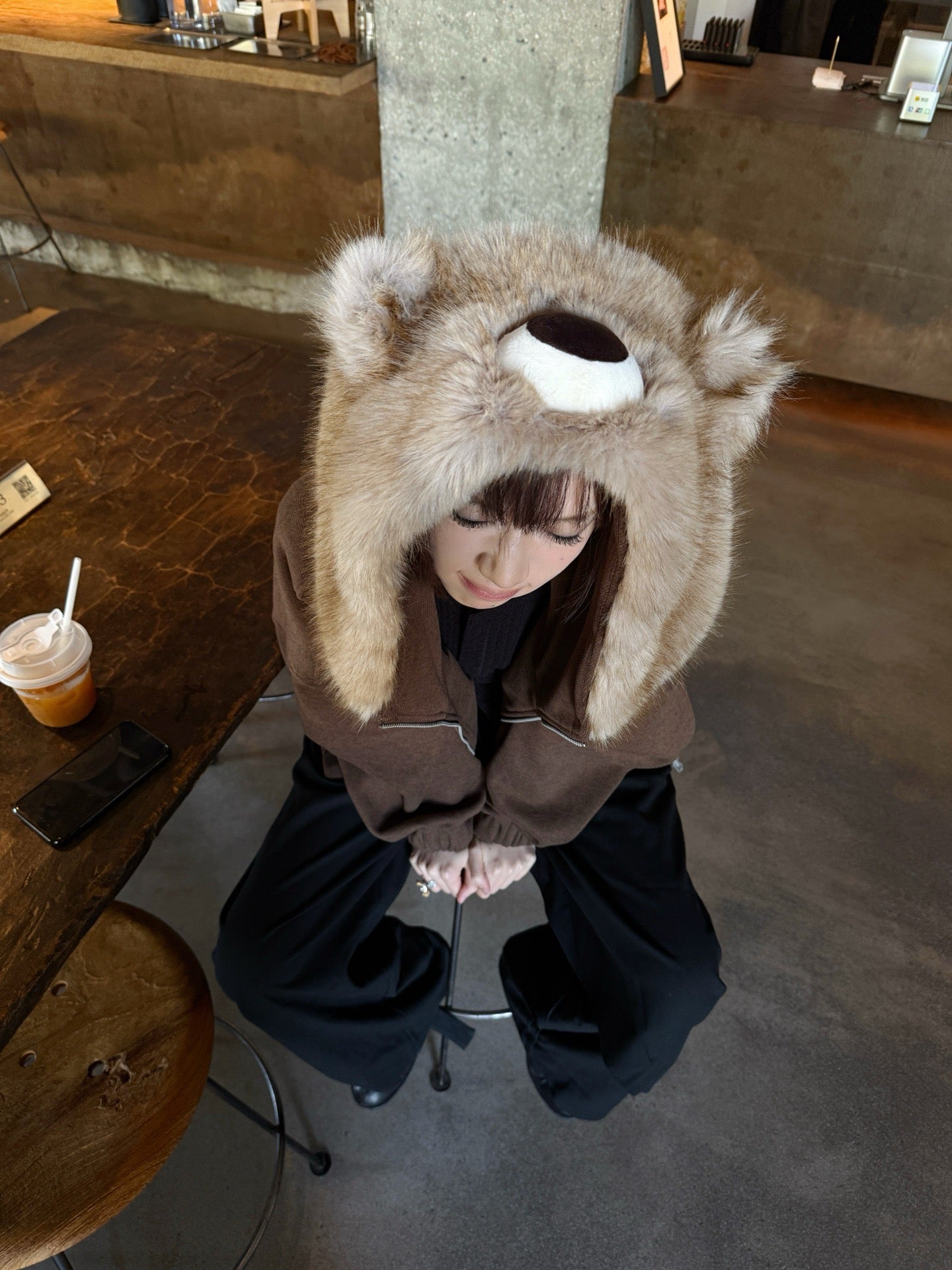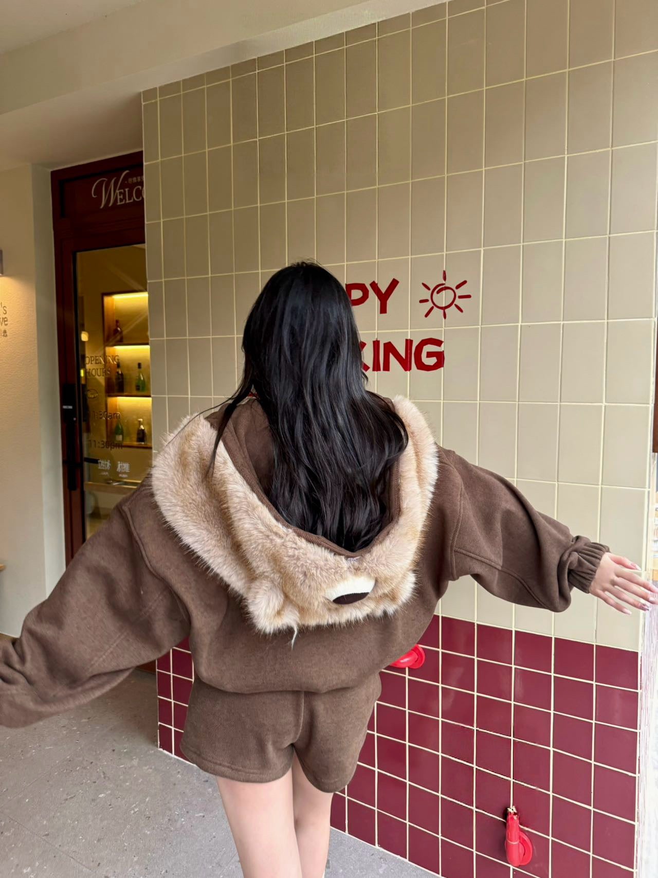 玩偶毛领拉链外套