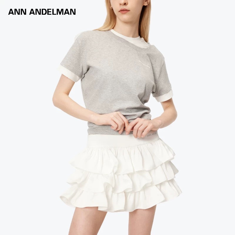 ANN ANDELMAN | Double-Collar Slim-Fit Short-Sleeve Top (2 Color)