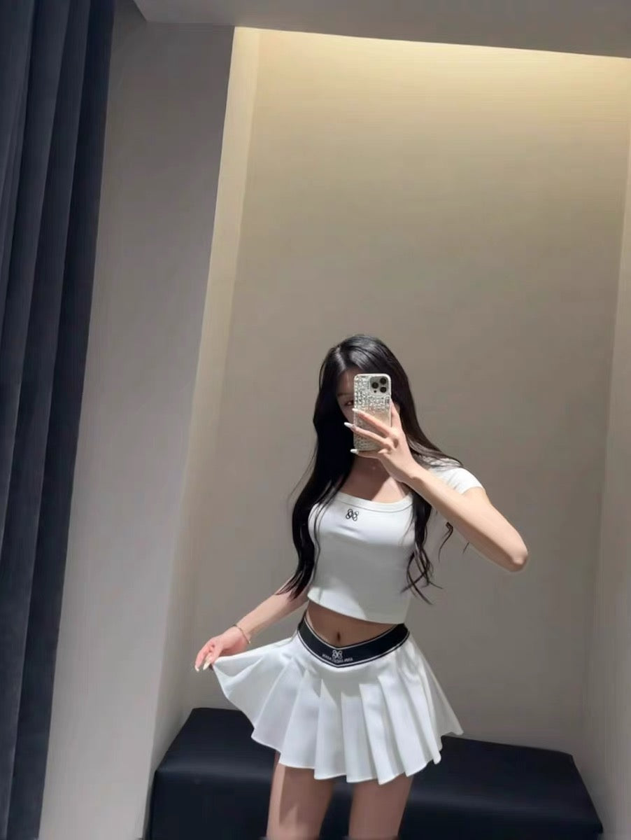 ANN ANDELMAN | Elastic Waist Pleated Mini Skirt (2 Color)