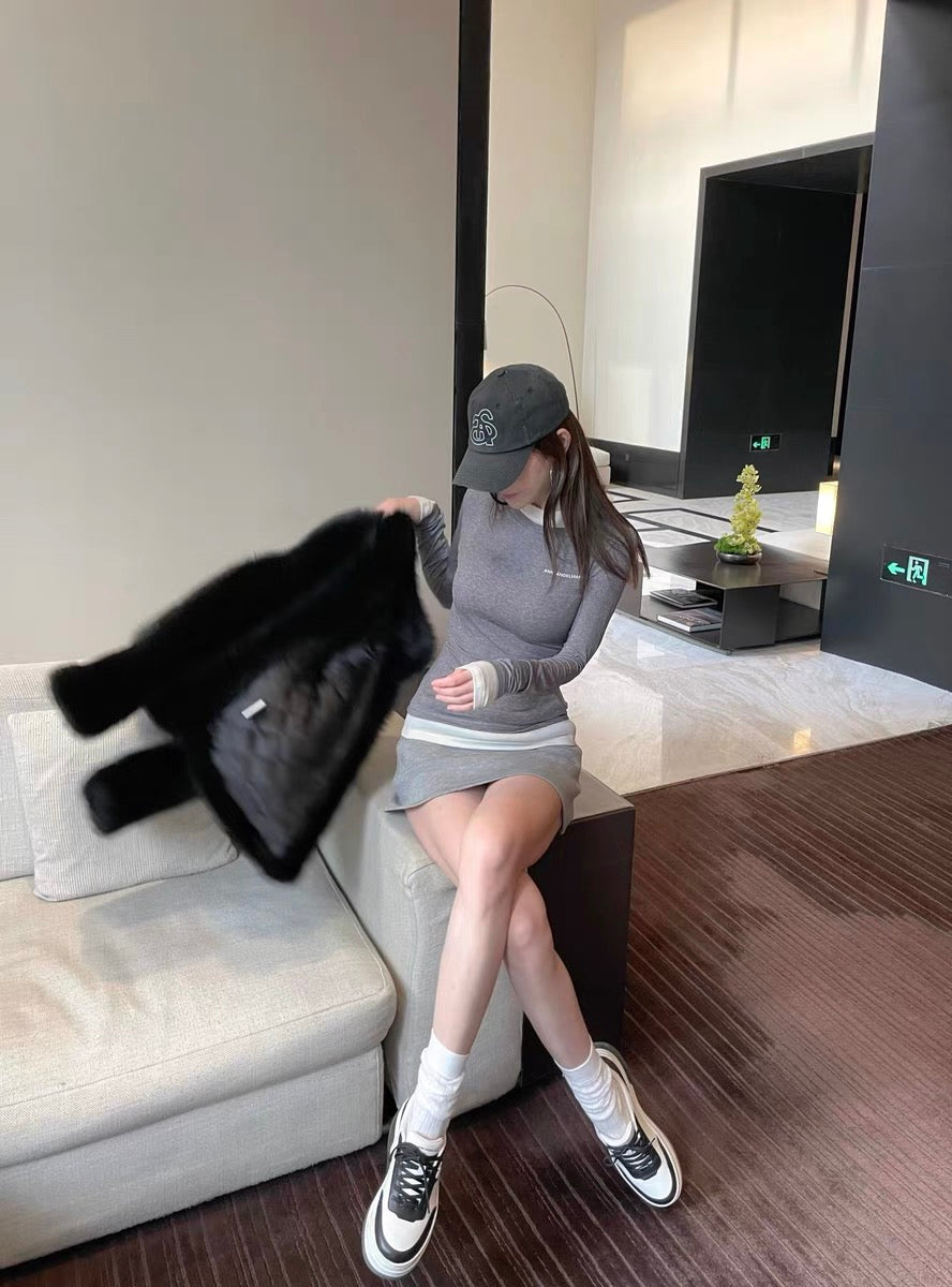 ANN ANDELMAN | Logo Trim Mini Skirt (2 Color)