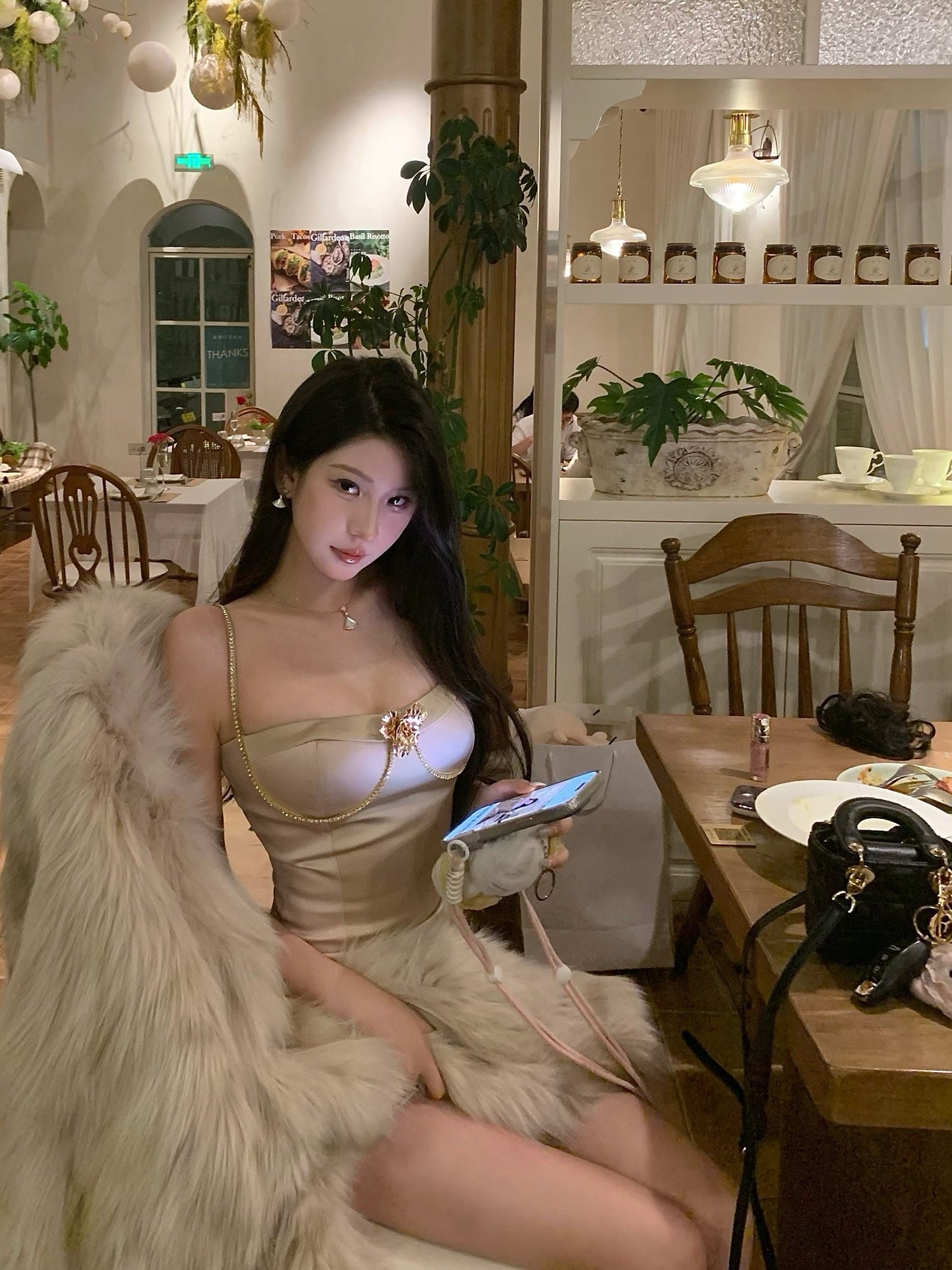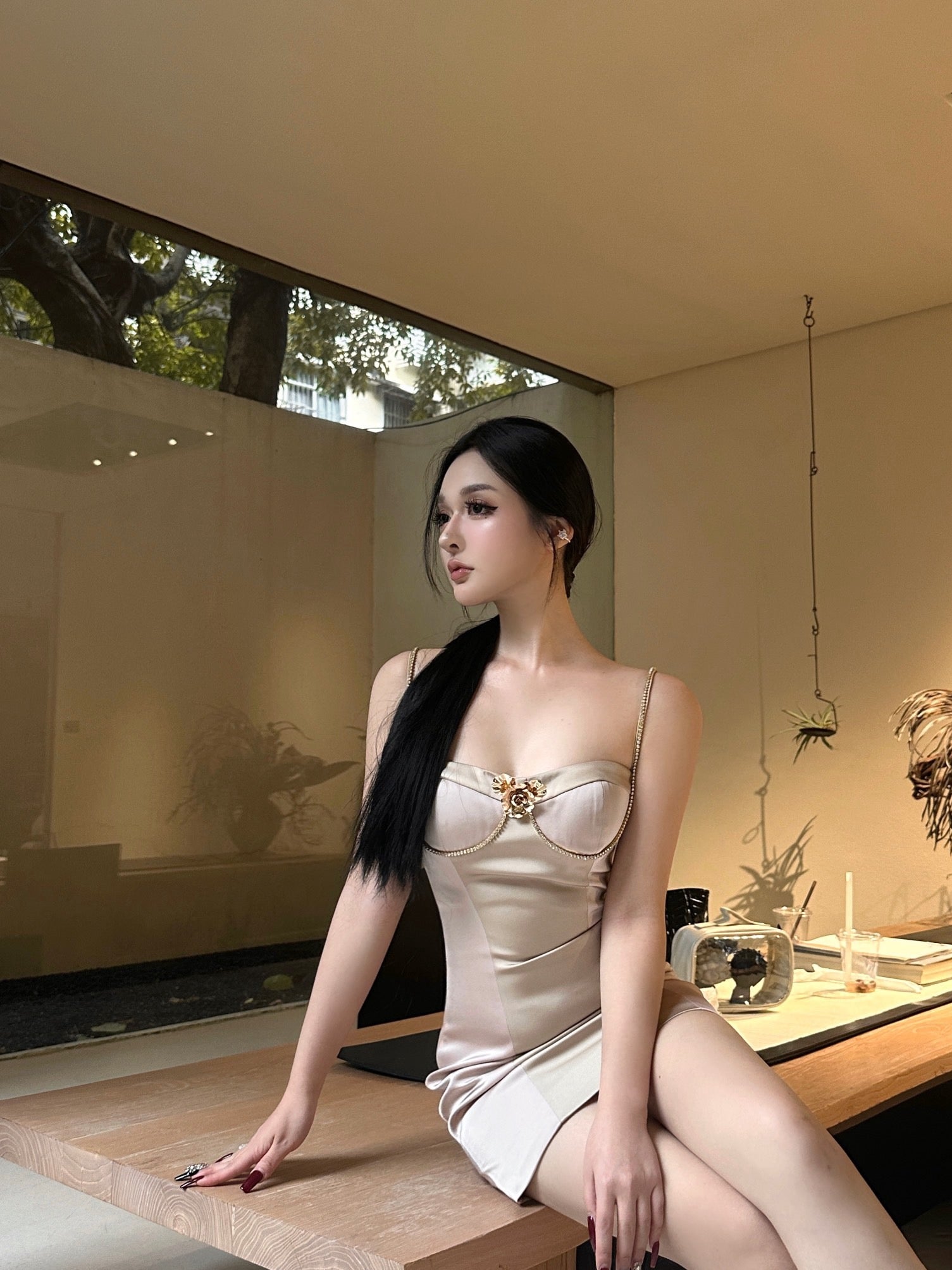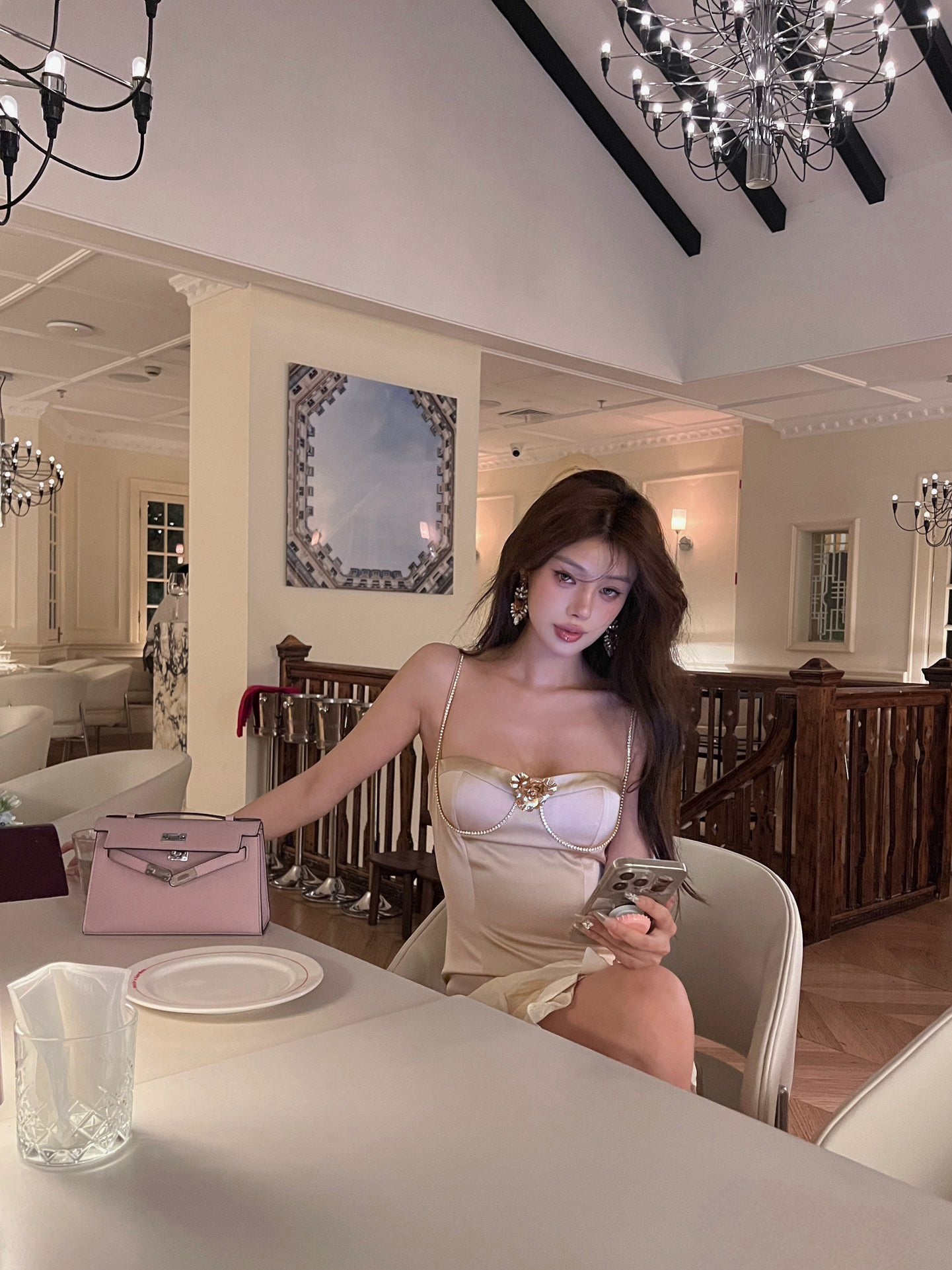 Artel Retro | Diamond Chain Spaghetti Strap Dress (Pink)
