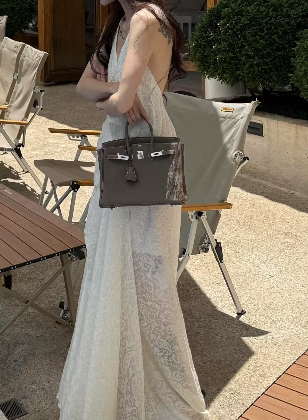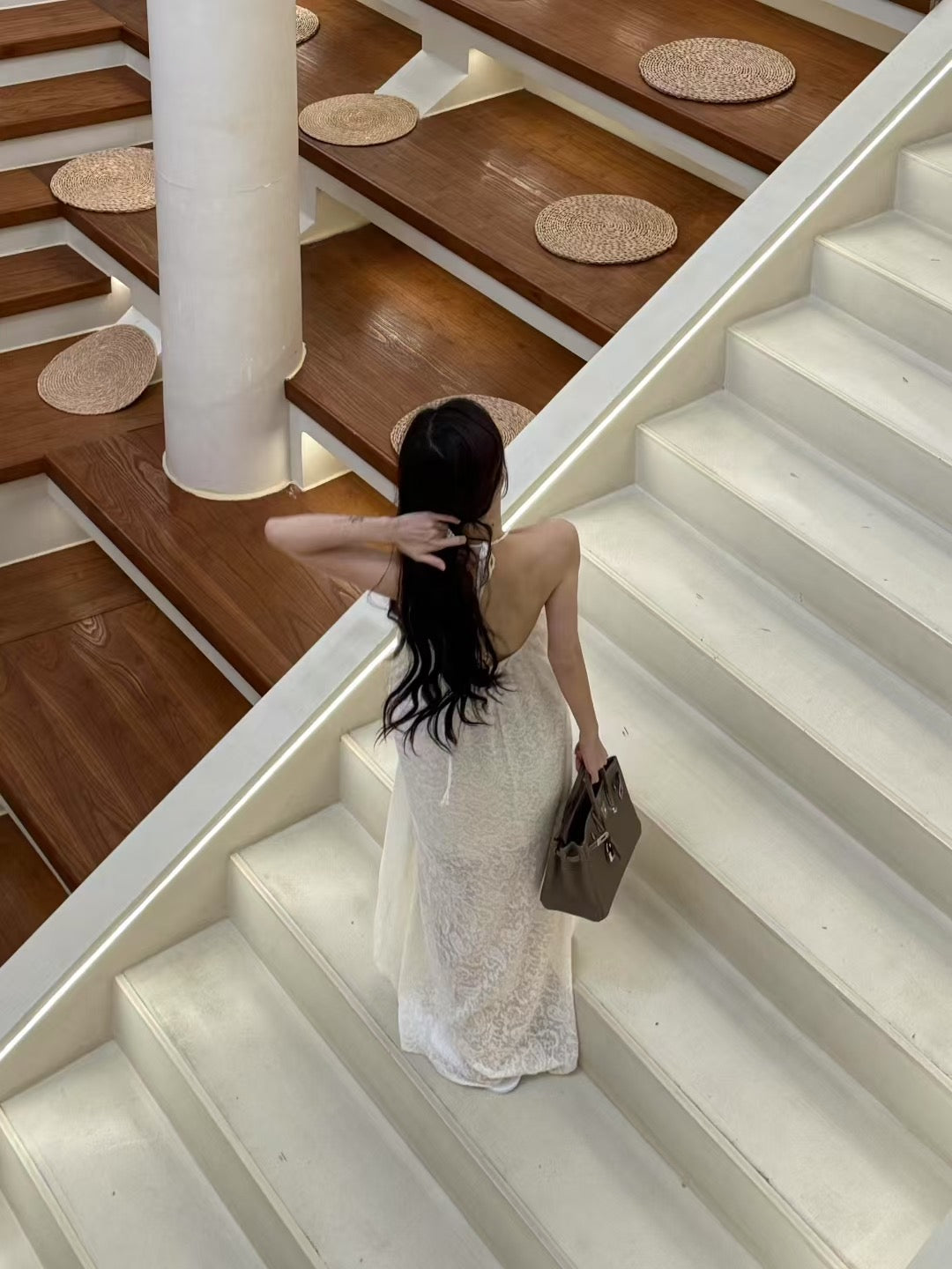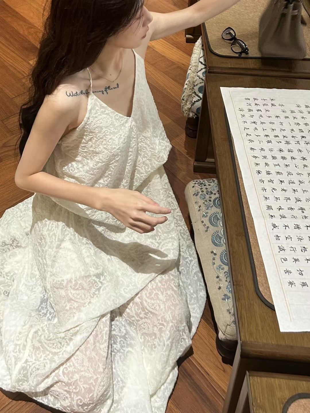 拂霭褶皱吊带长裙