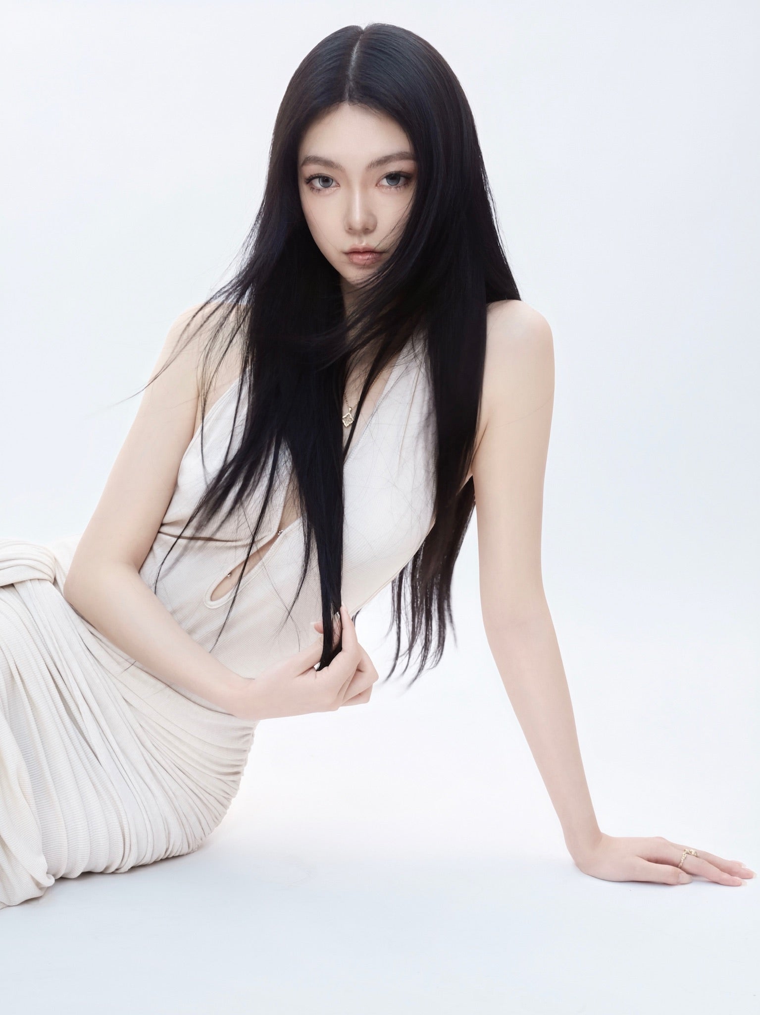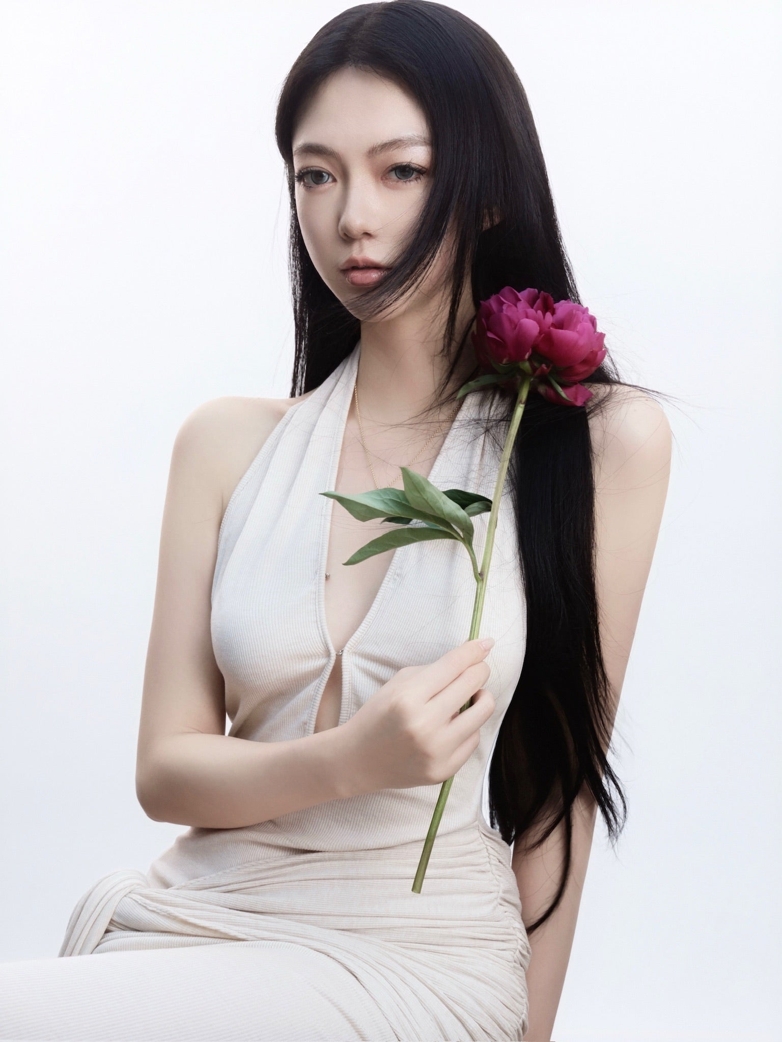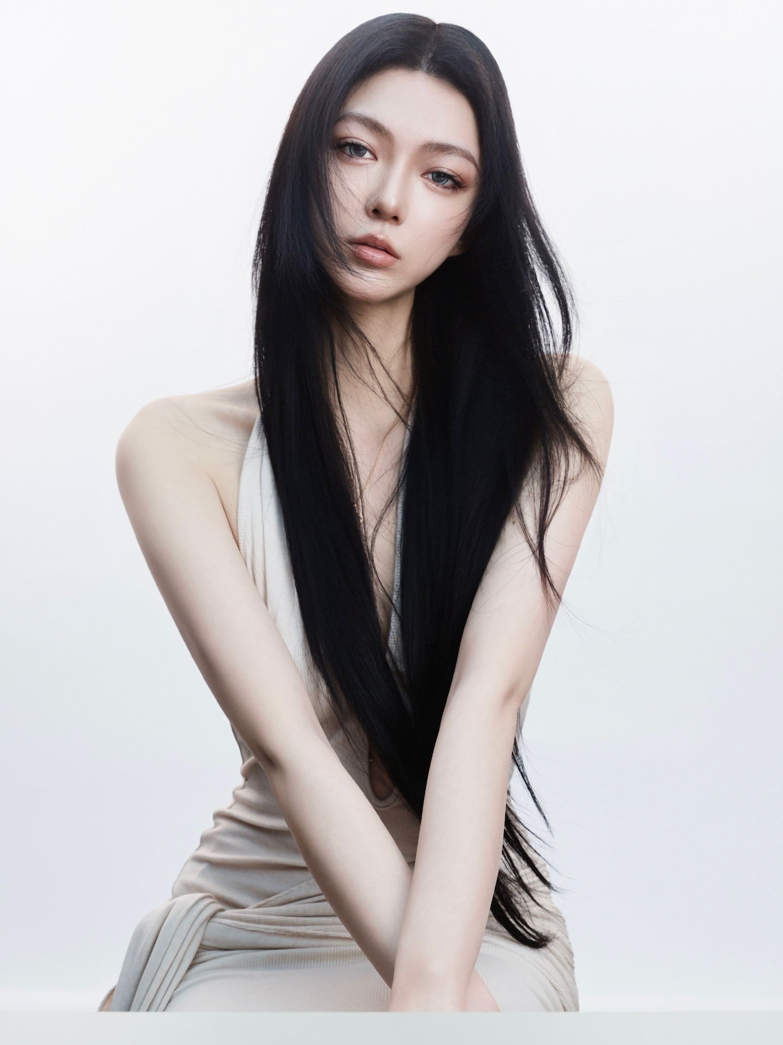 Tsuki | Asymmetric Halter Neck Backless Maxi Dress (Nude)