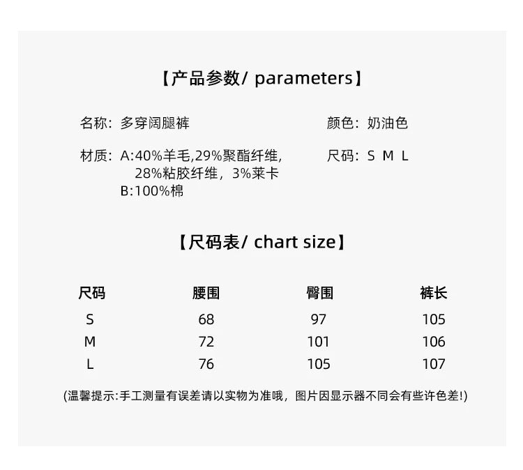 多穿阔腿裤/奶油色