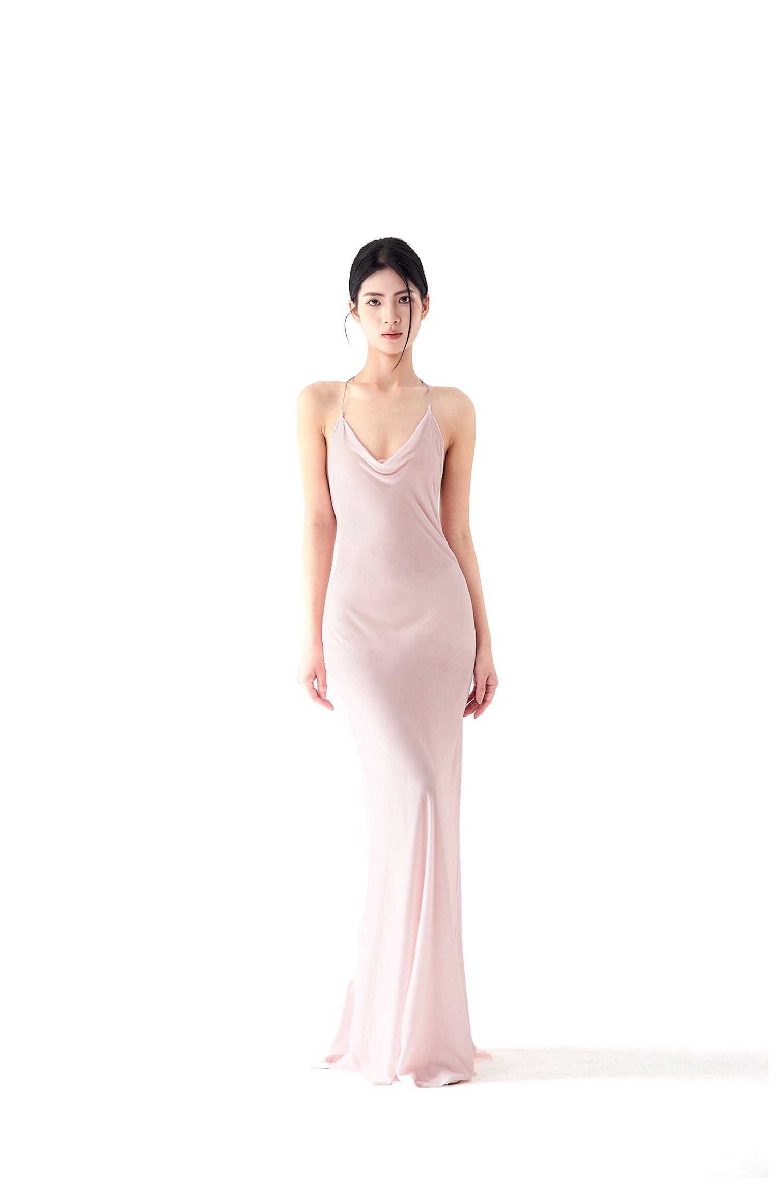 Tsuki | Velvet Maxi Dress with Chain (Sakura Pink)