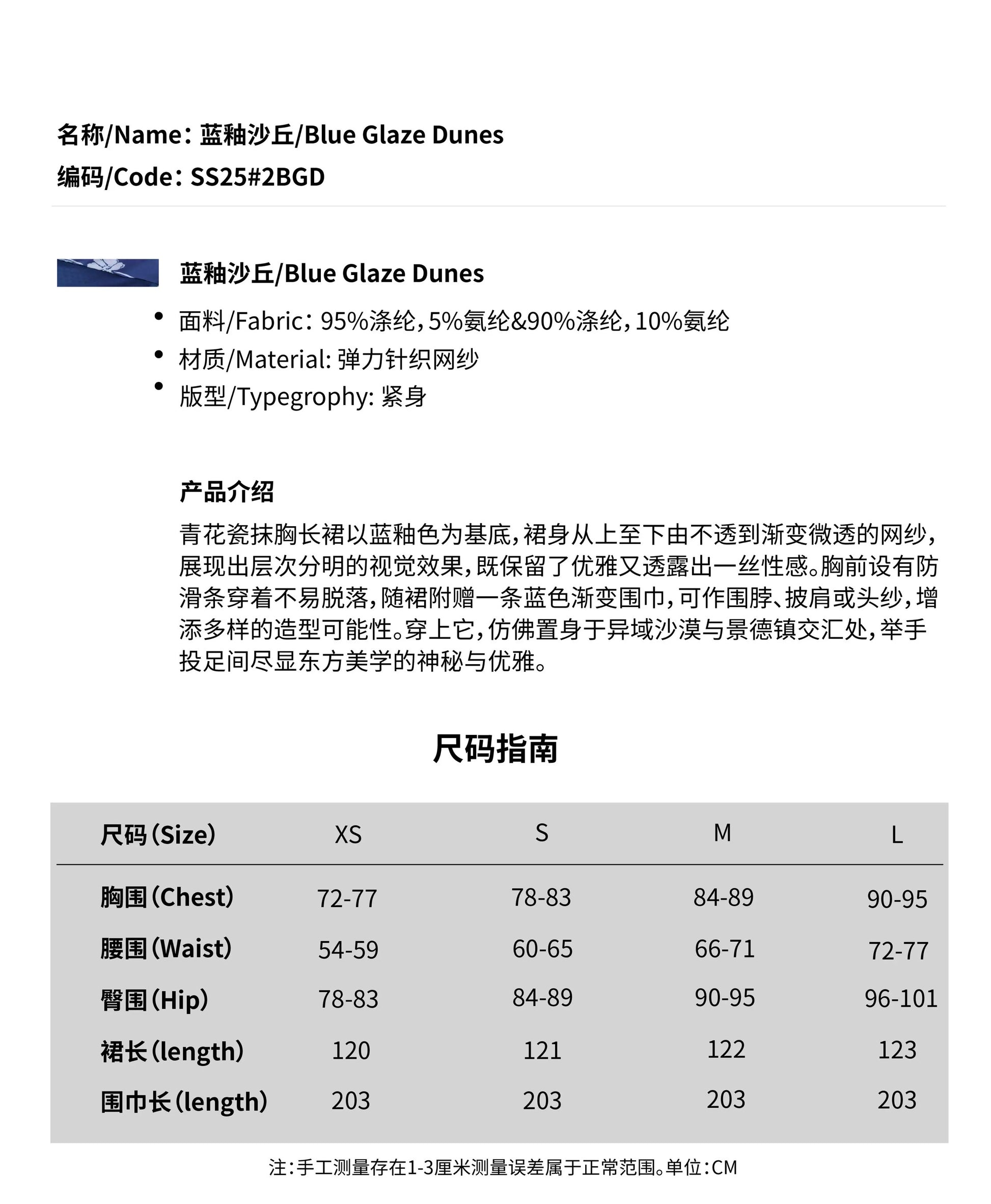青花瓷围巾渐变弹力印花网纱抹胸连衣裙长裙