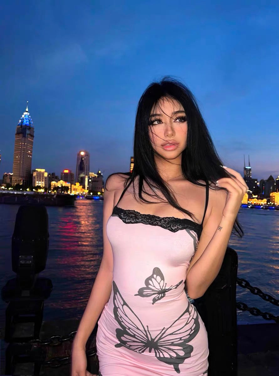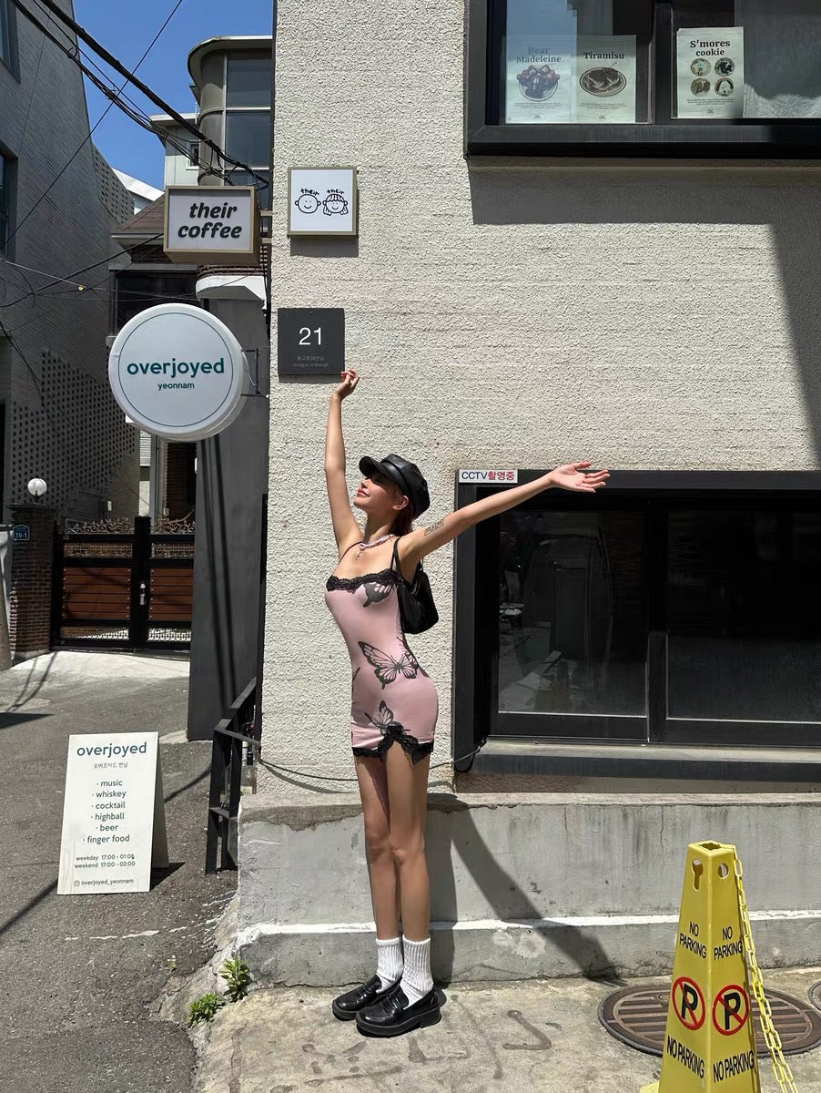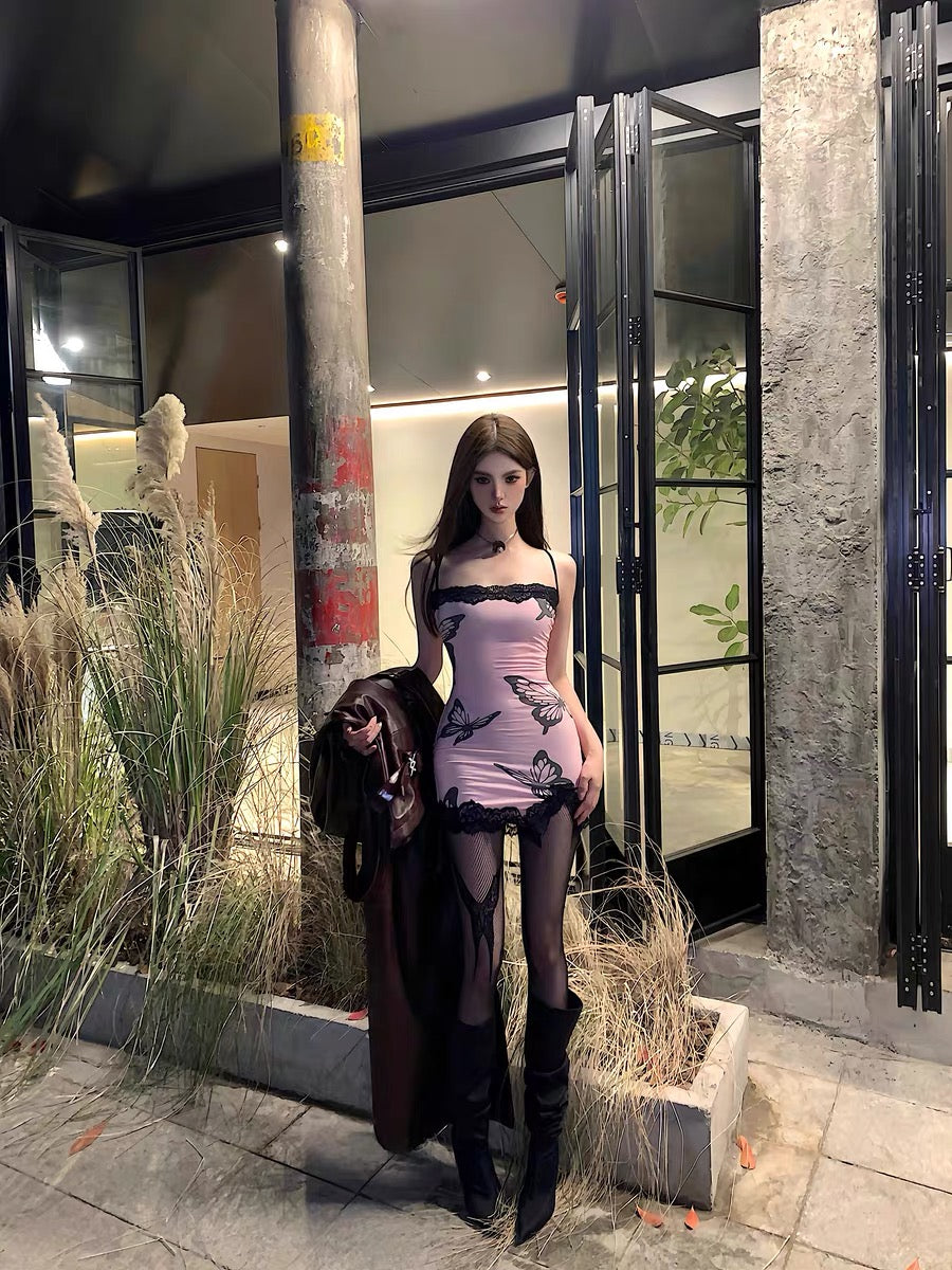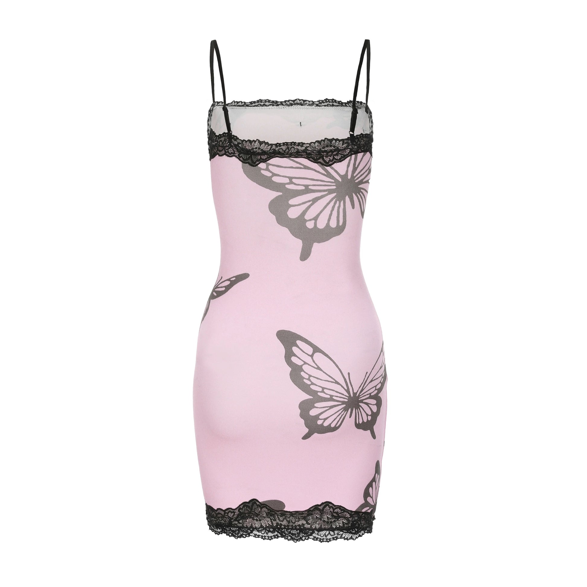 XENASERA | Butterfly Print Lace Strap Mini Dress