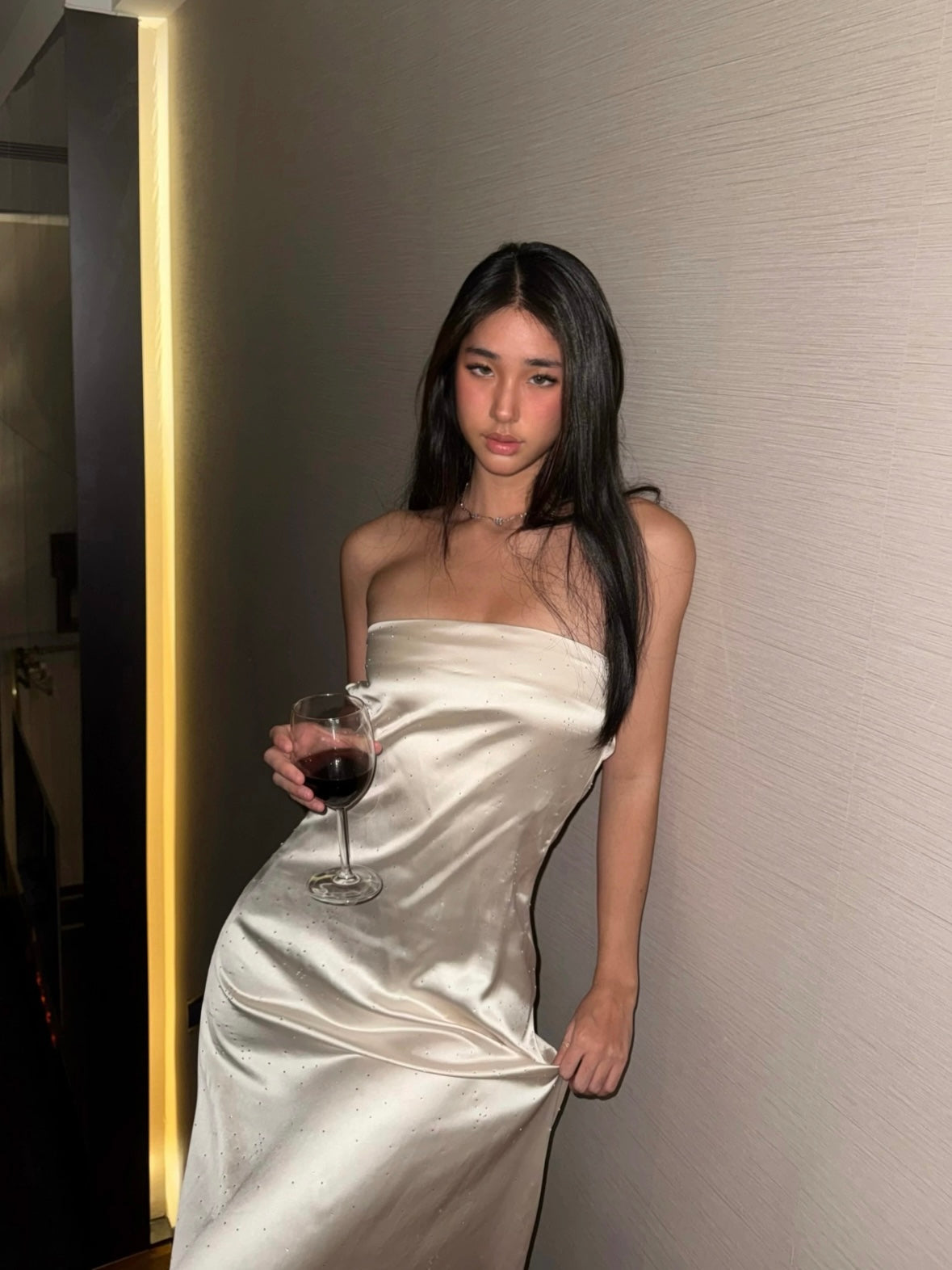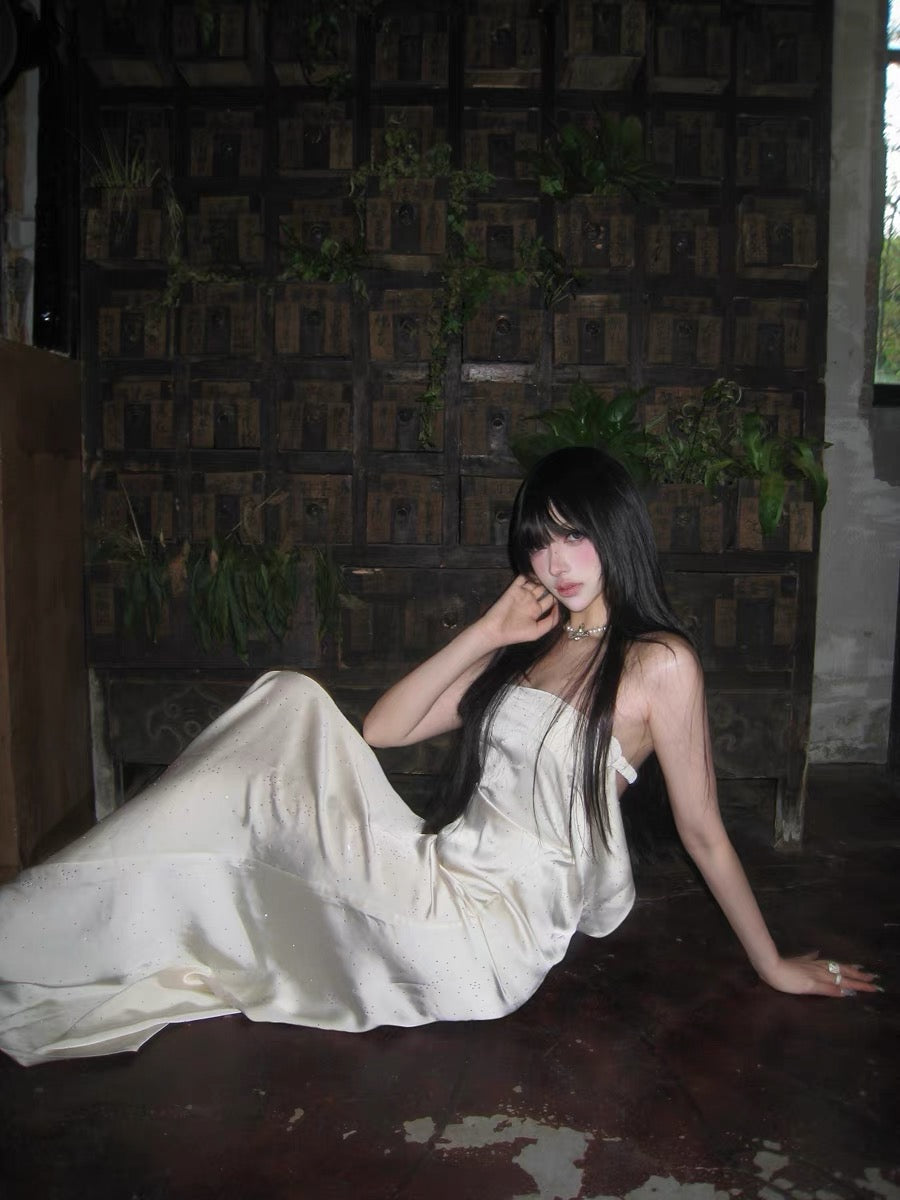 XENASERA | Rhinestone-Embellished Satin Strapless Backless Dress