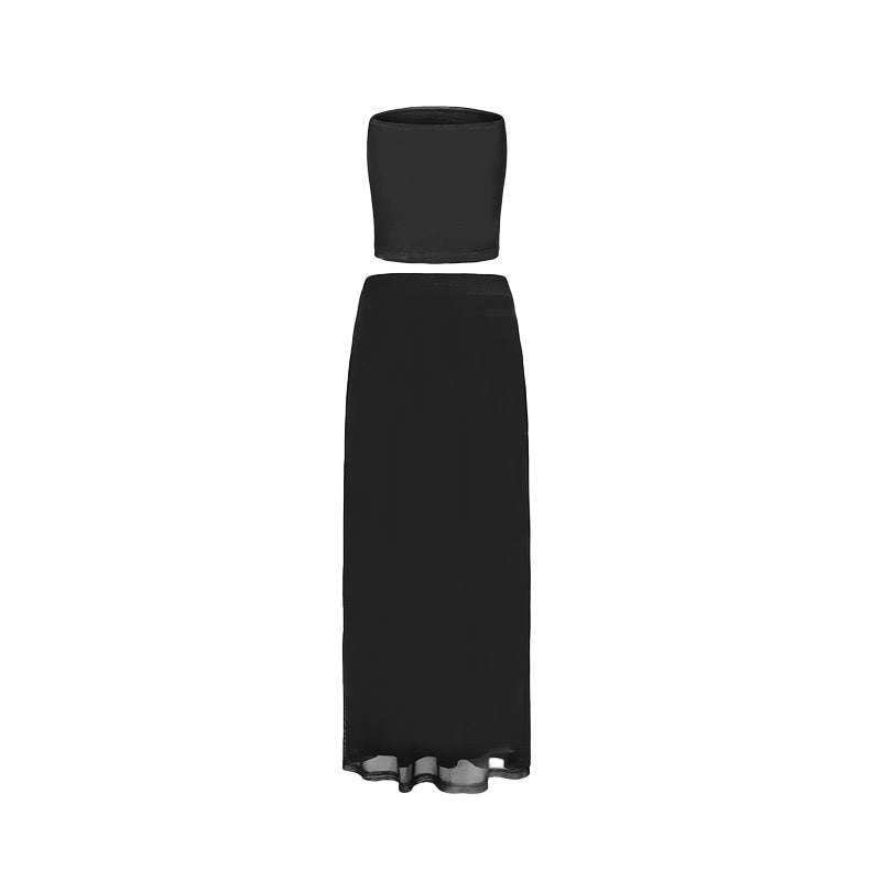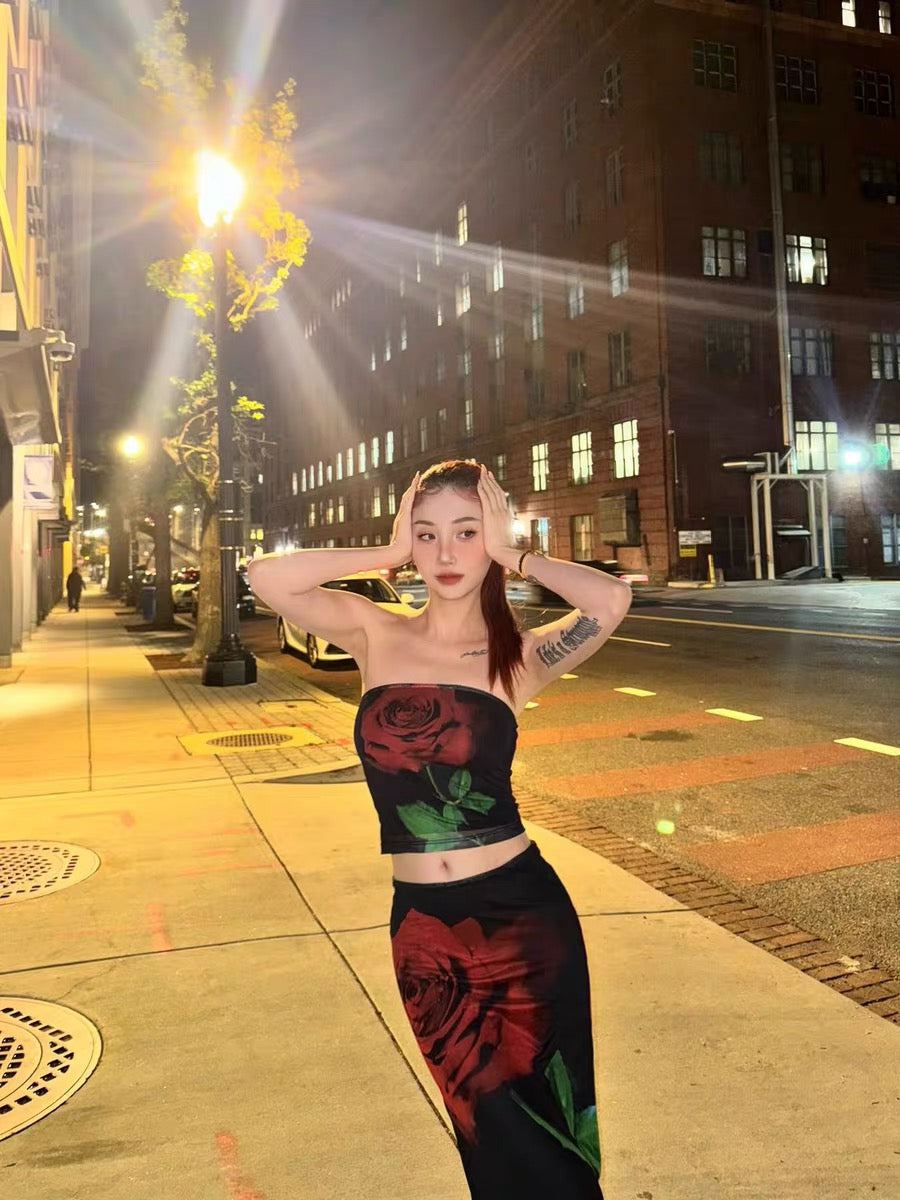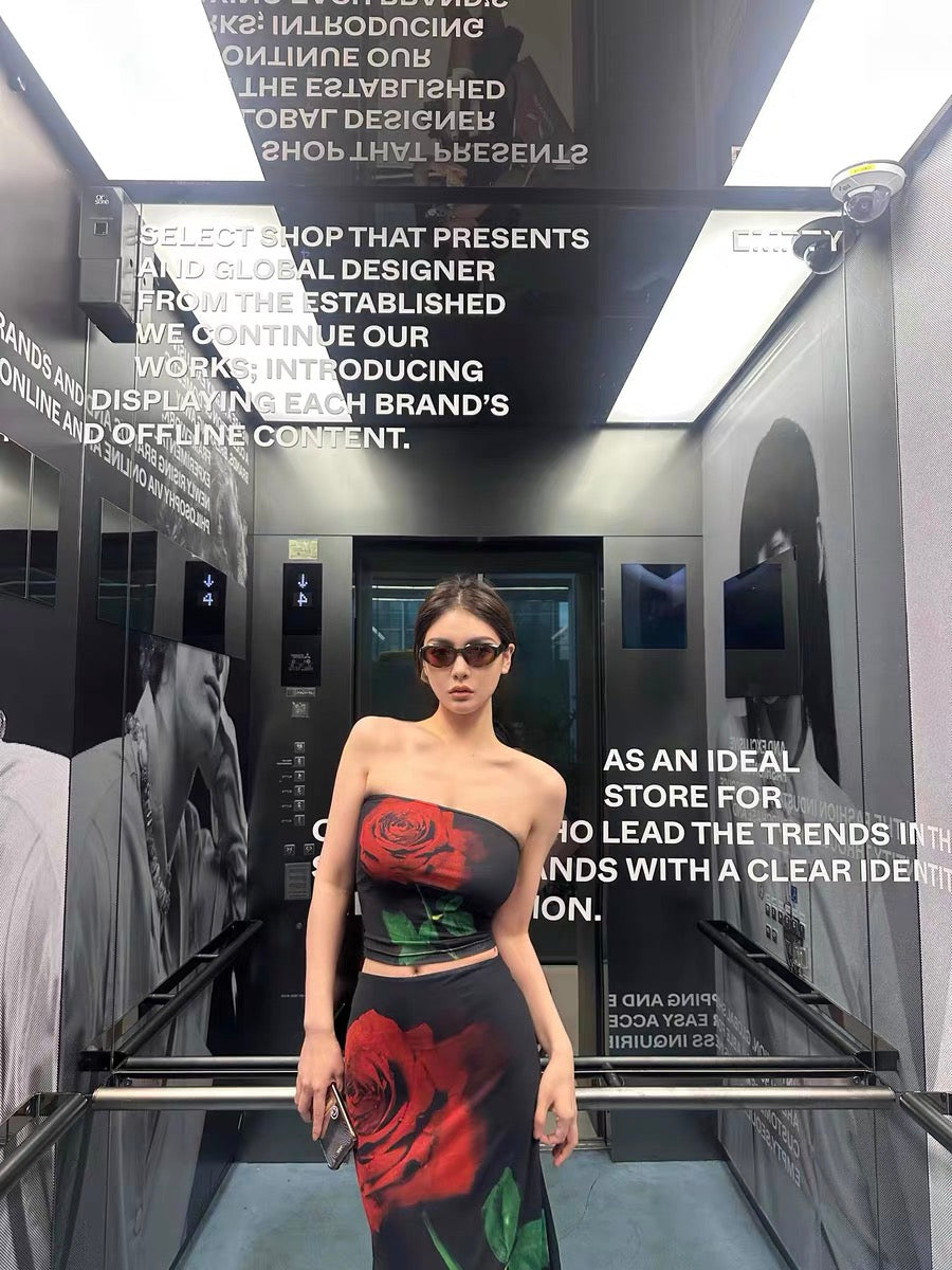 XENASERA | Rose Print Strapless Top and Skirt Set
